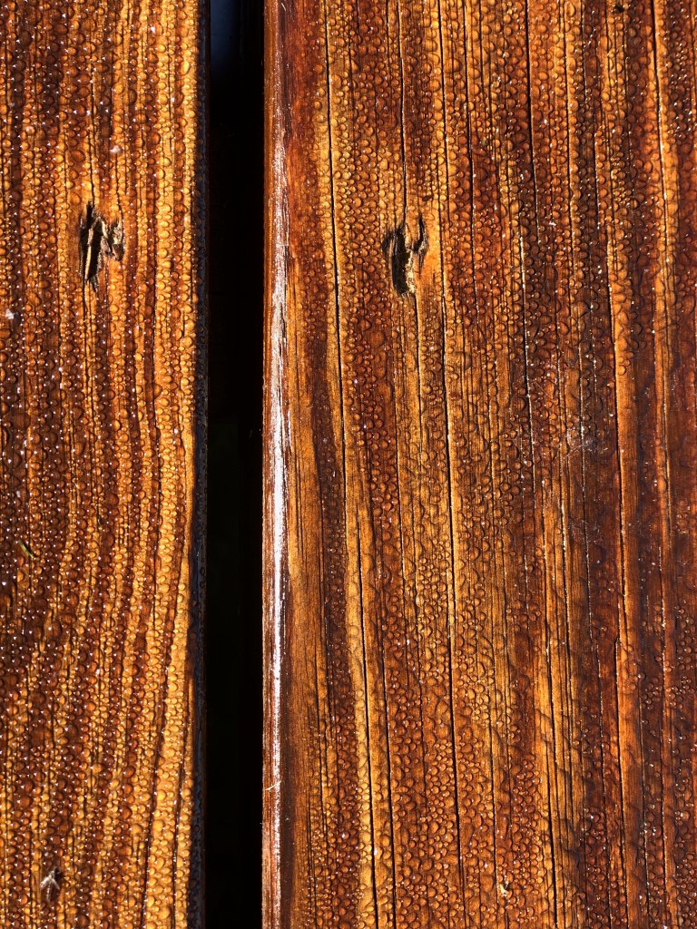 Against the newly varnished planks of the dock
